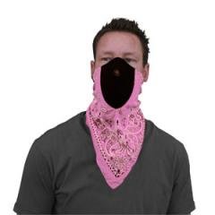 FEATURES: The Neodanna is a revolutionary item with multiple features. Our 100% cotton bandanna is combined with a neoprene face mask to ensure full coverage of the face and neck, providing a comfortable light-weight fit. The neoprene section covers the cheeks, nose & mouth, while the bandanna is easily adjusted with a Velcro? closure. Ideal for wind and dust protection in both warm and cold weather settings. Pink Paisley Design. U.S.A Patented
