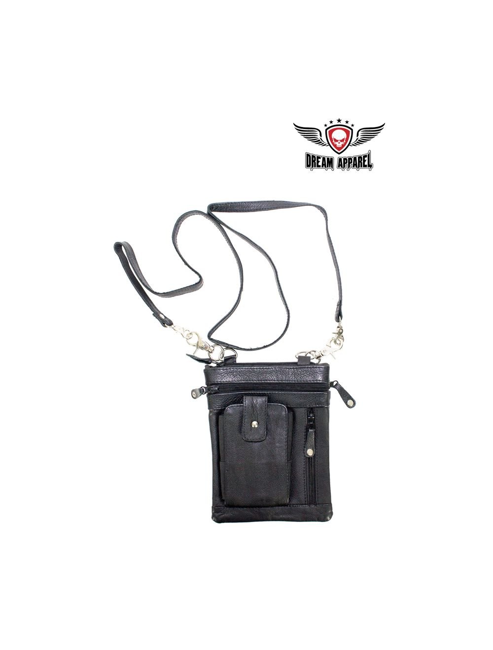 Dream Apparel's 9" x 7" black naked cowhide leather multi-pocket belt bag is made perfectly for a variety of situations including quick store runs or long bike runs with the club. Whatever it may be, your ideal choice is here. This belt bag is designed beautifully with five pockets all together. If you're the type of person who carries various items or you just like keeping your belonging's organized, then this bag is the perfect accessory for you. The lobster clasps included allow easy attachment to your belt loops and the leather strap gives you the alternative to just throw it over your shoulders. Either way, this bag is a must have for any biker looking to improve their look while still having a great amount of storage.